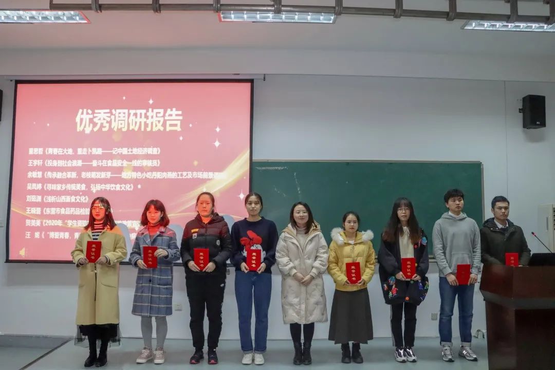 关于表彰2020年社会实践优秀调研报告、社会实践先进个人及优秀团队的决定》。随后,邵春妍、陈宏强、万洋波分别为社会实践优秀调研报告获得者、社会实践先进个人、社会实践优秀团队颁奖。
