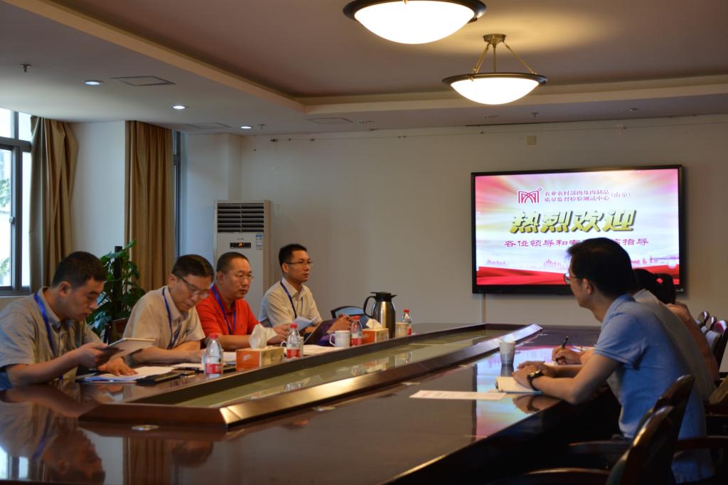 9月18日,国家认监委2019年度国家级资质认定检验检测机构专项检查组对农业农村部肉及肉制品质量监督检验测试中心(南京)[南京农业大学](以下简称“中心”)进行了为期一天的飞行检查。南京农业大学科学研究院实验室与平台处基地科科长李井葵、中心副主任王玮、中心质量负责人/业务室主任沈娟及业务室、理化室和微生物室等科室技术人员参加了检查组召开的首末次会议。