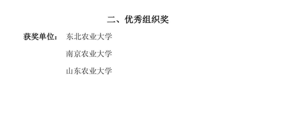 大赛共评选产生金奖2项、银奖5项、铜奖12项和优秀组织奖3项,其中优秀组织奖由山东农业大学、东北农业大学、南京农业大学获得。