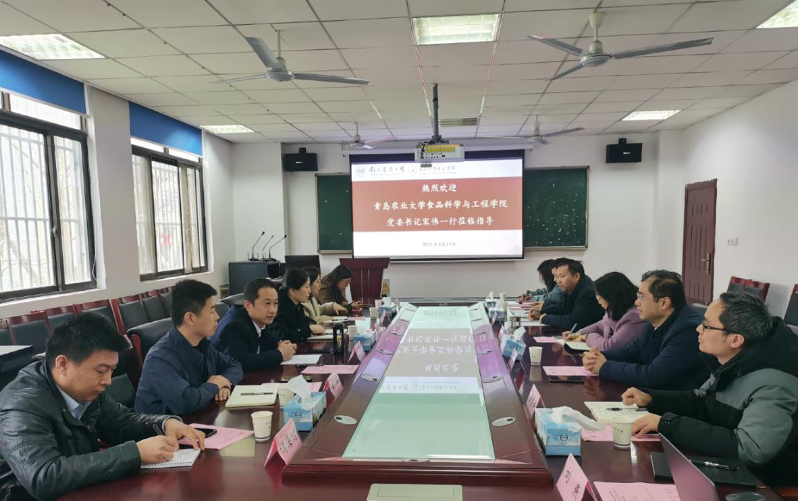 3月17日上午,青岛农业大学食品科学与工程学院党委书记宋伟、副院长肖军霞、党委委员李鹏、专业负责人郭丽萍、王凤舞、谭海刚共6人来我院调研。我院党委书记孙健、院长徐幸莲、副院长辛志宏、系副主任潘磊庆、杨润强等出席了此次交流会。