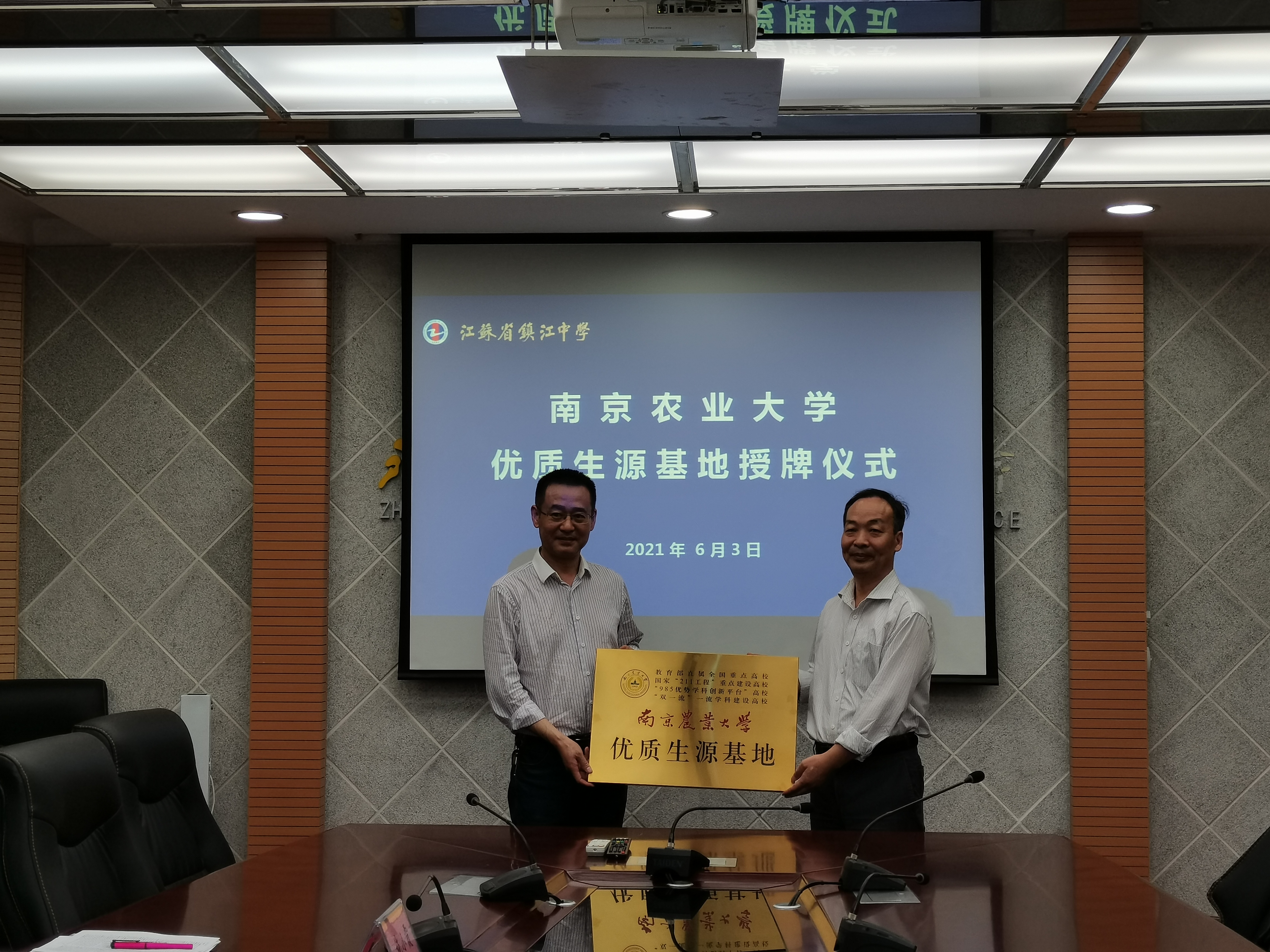 在镇江中学,招生小组受到了学校副校长陆建根,主任施小霞等的欢迎。陆建根对南京农业大学一行来访表示热烈欢迎,并介绍了江苏省镇江中学的办学历史、学校规模及毕业生升学去向等情况,希望今后可以与南京农业大学加强合作交流,特别是积极开展学生优秀科技作品展览、讲授科普讲座等活动。双方举行了优质生源基地签约授牌仪式。