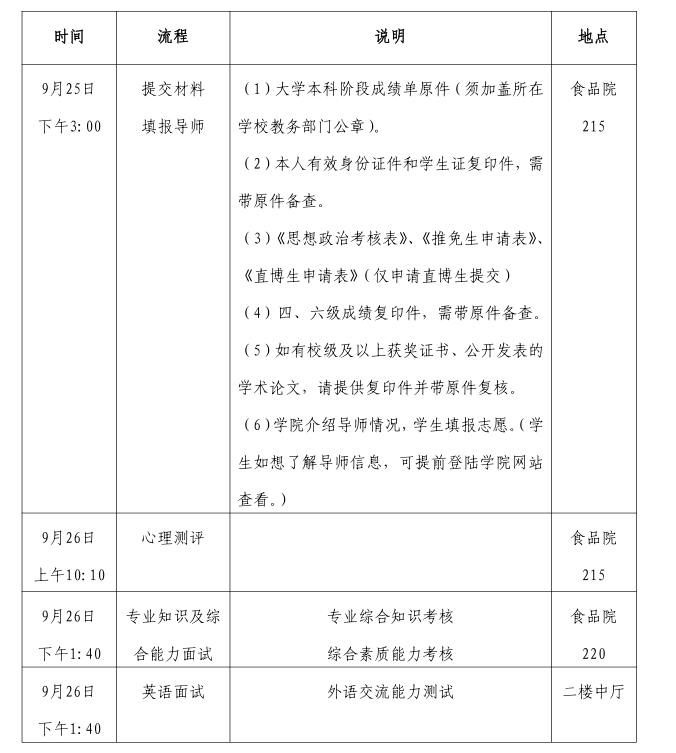 根据《mgm赌场 2020年招收推荐免试攻读硕士学位研究生工作办法》,报考我院且初审通过的同学请于9月25-26日参加我院的复试。具体安排如下: