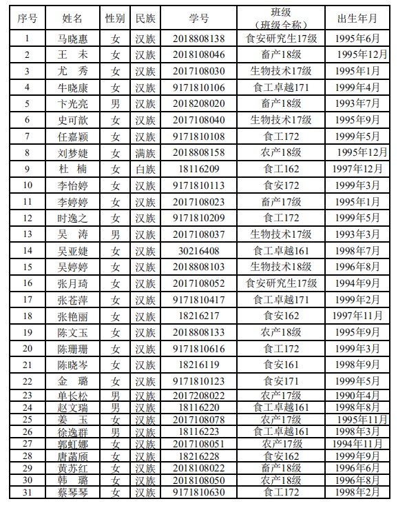 如有任何疑问,请在12月30日前向食品科技学院党委反映。