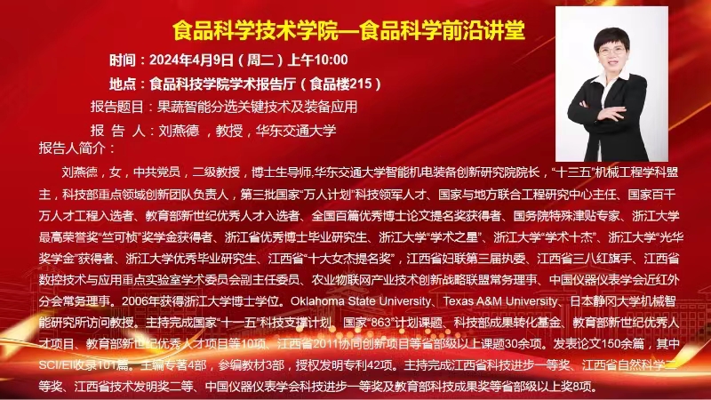 mgm赌场 食品科学前沿讲堂(4月9日)
