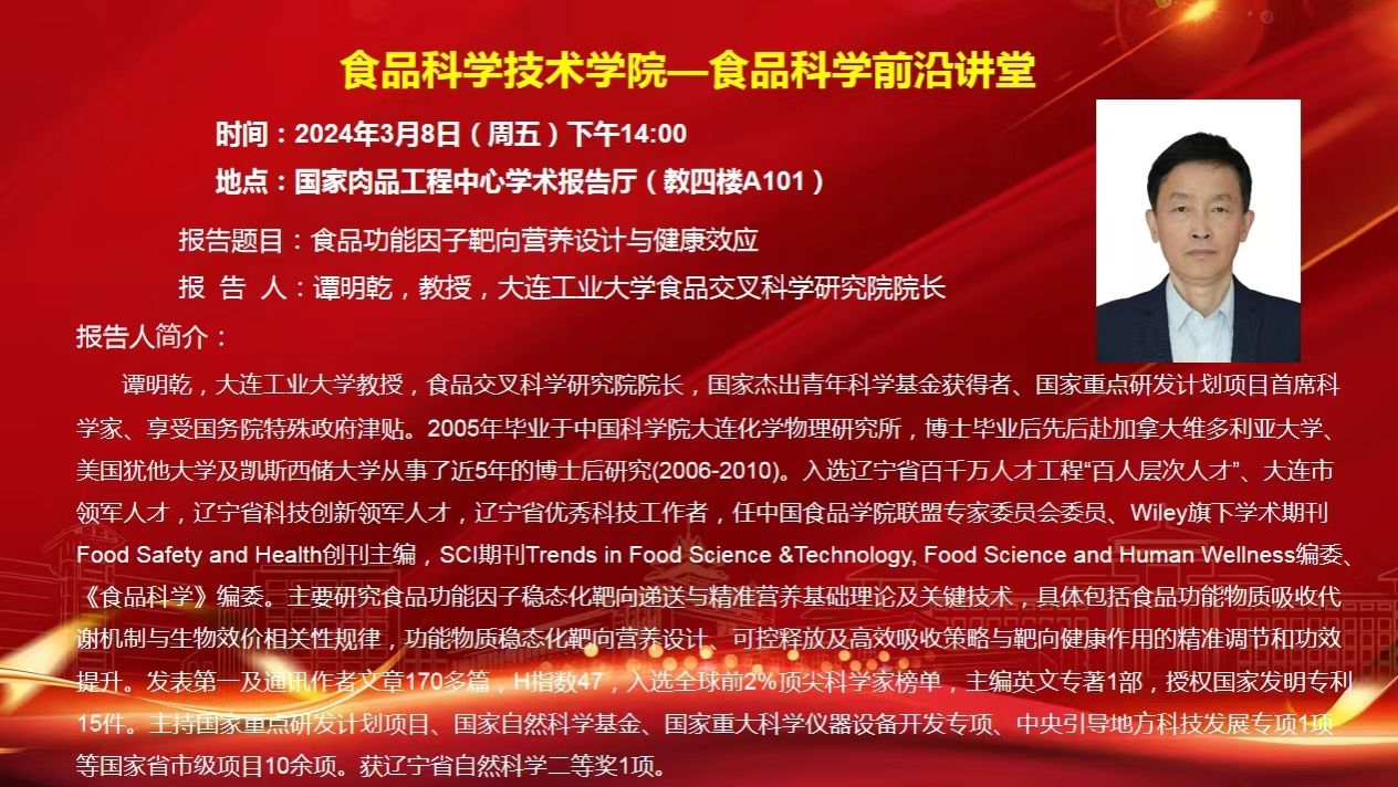 mgm赌场 食品科学前沿讲堂(3月8日)