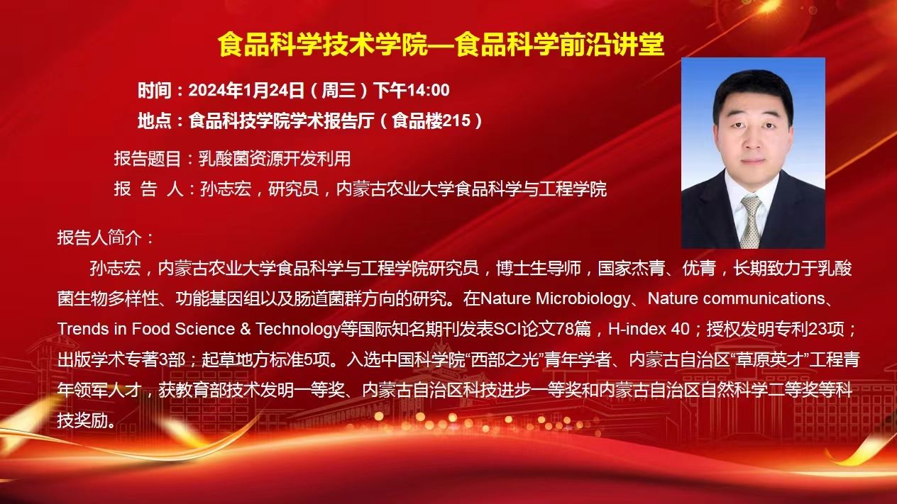 mgm赌场 食品科学前沿讲堂(1月24日)