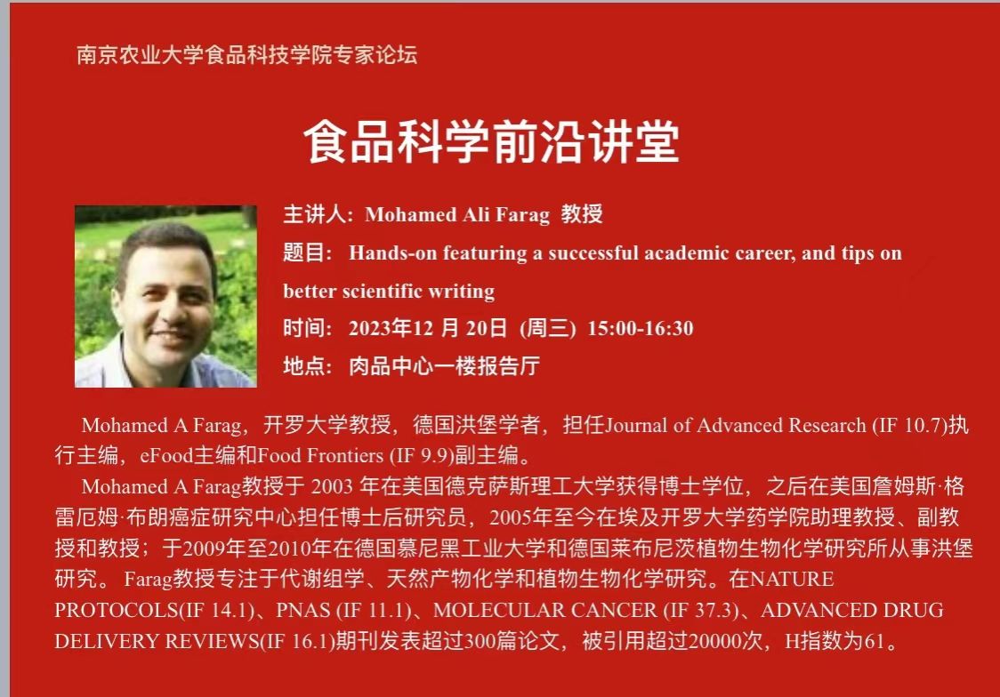 mgm赌场 食品科学前沿讲堂(12月20日)