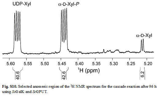该研究还发现,ScGalK催化木糖磷酸化反应可用于替代木糖化学法合成中的化学磷酸化步骤,立体选择性地合成纯的α-端基木糖-1-磷酸,而不是α-和β-两种构型的混合物。