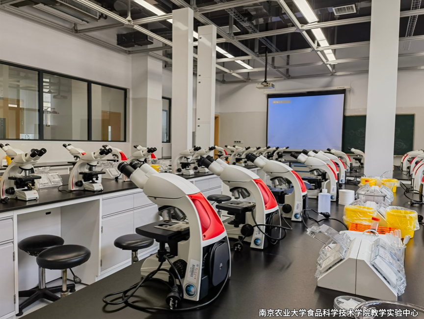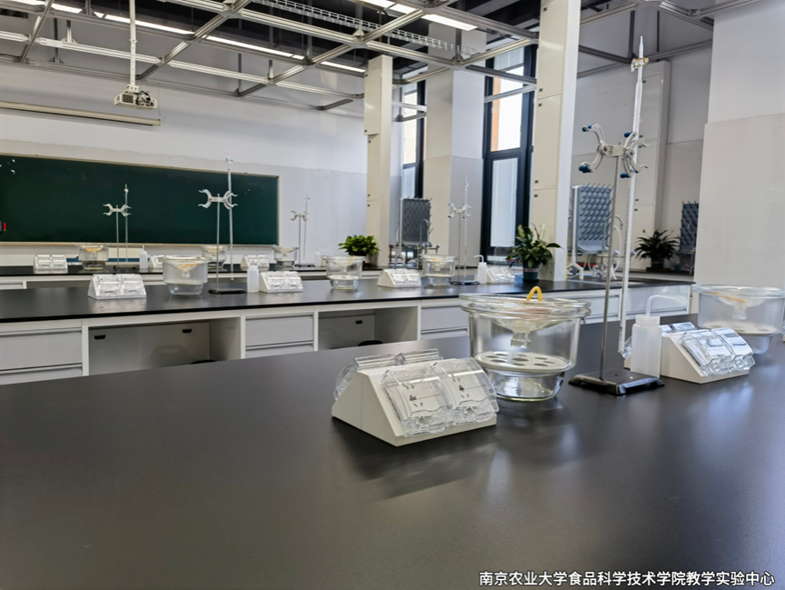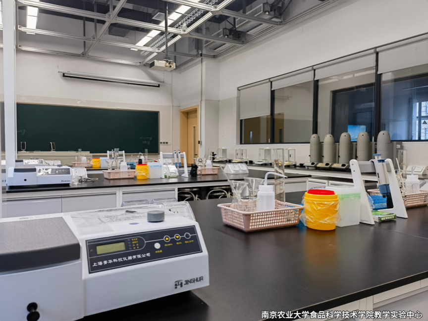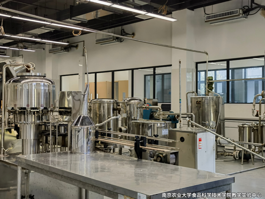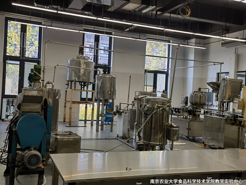 中心于2024年9月搬迁至南京农业大学滨江校区,占地面积面积约2000多平方米,建设有多条中试生产线(饮料生产线1条、中西式肉制品生产线各1条、2025年预建设创新功能新乳制品生产线1条、2025-2026年预建设酸奶生产线和烘焙制品生产线各1条)。中心有功能性实验室12间(食品化学教学实验室、食品分析教学实验室、食品营养与功能教学实验室、食品营养与健康教学实验室、食品工程教学实验室、食品微生物教学实验室、生物工程教学实验室、发酵工程教学实验室、细胞工程教学实验室、农产品加工工艺教学实验室、畜产品加工工艺教学实验室、农产品贮藏教学实验室。),面向8个专业的本科生和国家重点一级学科食品科学与工程的研究生开设各类实验课程50余门,实验项目数近400余个,年实验人时数超过10万。