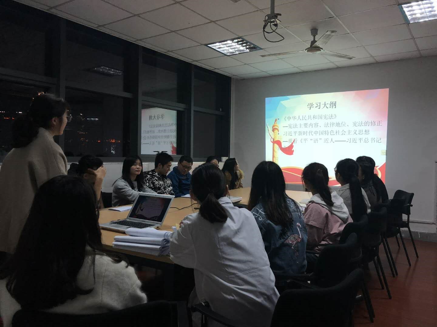 本次思想政治理论专题学习鼓励各个支部全面准确领会和把握《中华人民共和国宪法》,并观看由中共中央宣传部、中央广播电视总台联合创作的《百家讲坛》特别节目《平近人——习近平总书记用典》。积极学习文明校园创建手册,落实社会主义核心价值观。