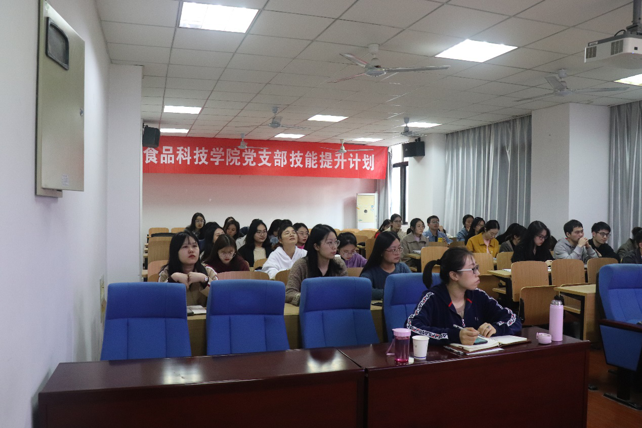 党支部技能提升计划”专题讲座。主讲人为党委组织部专职组织员何旭,食品学院本研支部书记及委员近40人参会。讲座由mgm赌场