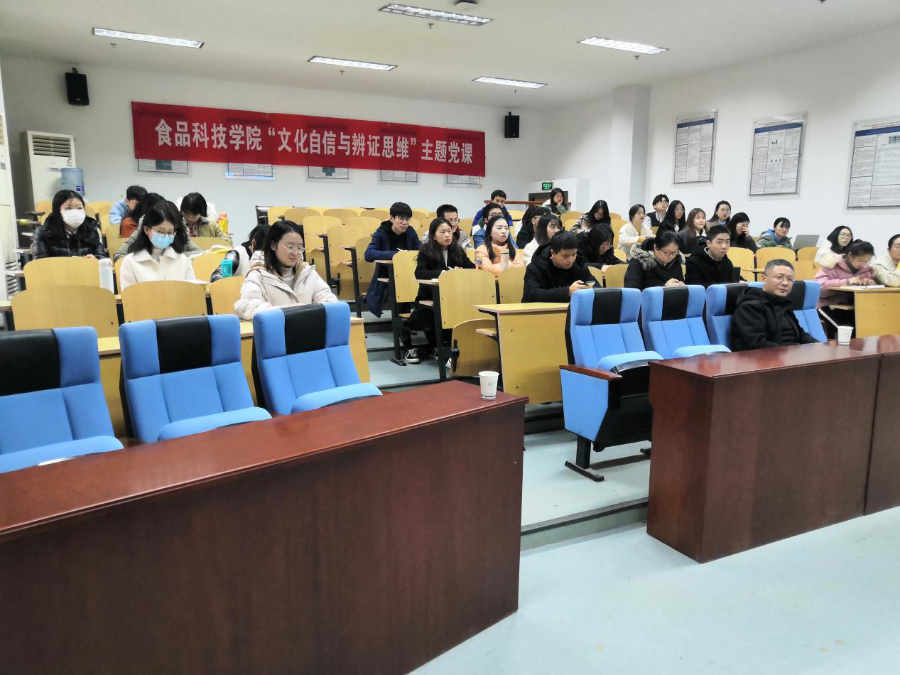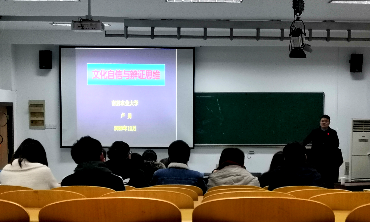 “文化自信与辩证思维”四史主题教育党课在肉品中心报告厅顺利举办。南京农业大学人文社科处副处长卢勇教授受邀开展报告。本次活动由食品院党委副书记邵士昌主持。