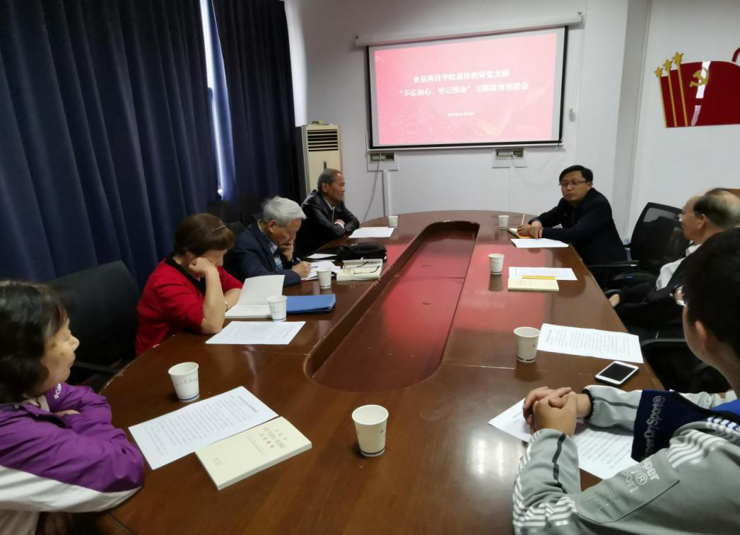 离退休教师党支部在食品院党员活动室举办“不忘初心、牢记使命”主题教育学习会。学院党委书记朱筱玉出席了座谈会,支部六位退休党员参加此次活动。座谈会由学院离退休党支部书记江汉湖教授主持。