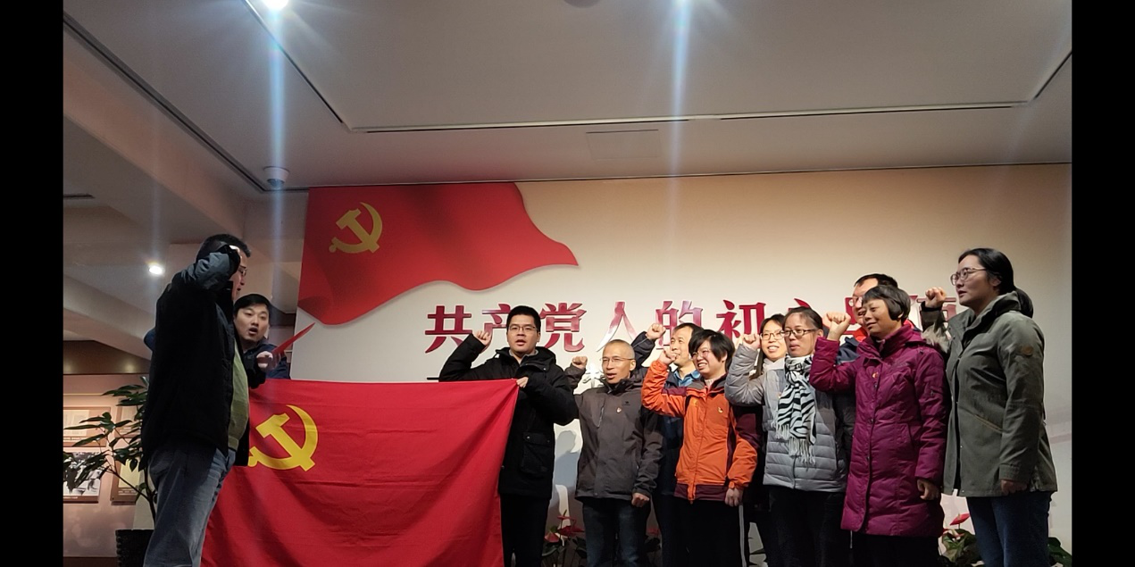 生物工程教师党支部书记李伟带领全体党员一起重温了入党誓词。