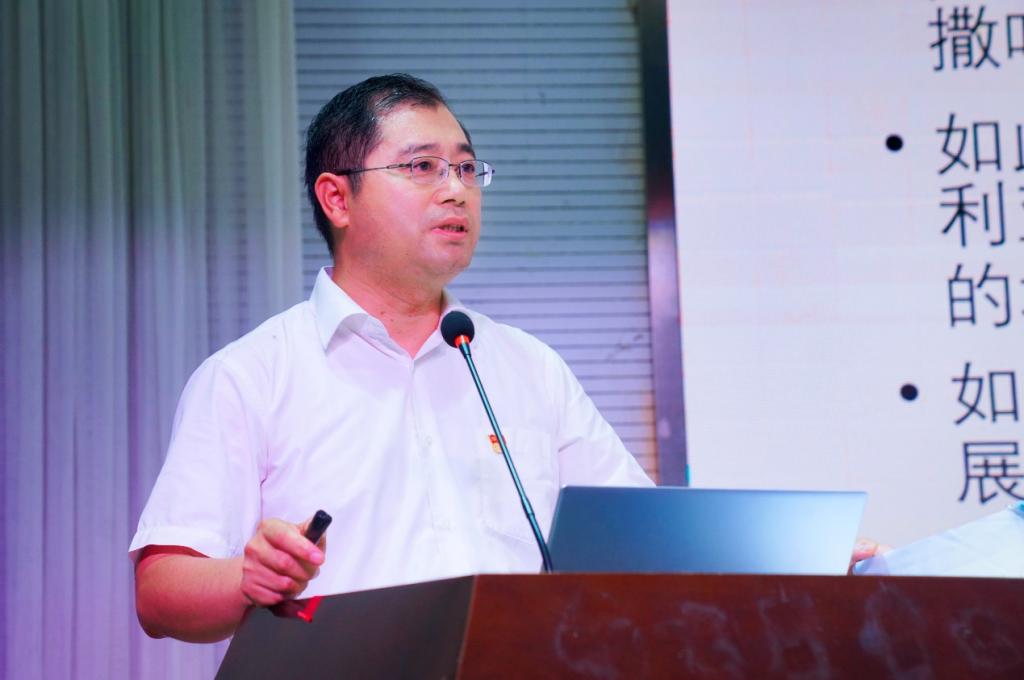 党日活动的第一部分由孙健以“中国式现代化的内涵、挑战及对策”为主题为在座师生党员开展了一场思想深刻的主题党课,结合党的二十大报告和中国式现代化的本质要求,根据中国本土国情分析了中国现代化进程面临的种种挑战,并从多个方面对中国式现代化进行了系统梳理和全方位解读,为全体师生党员从中国式现代化的内涵及意义,中国式现代化面临的挑战及对策两大部分进行展开讲授。