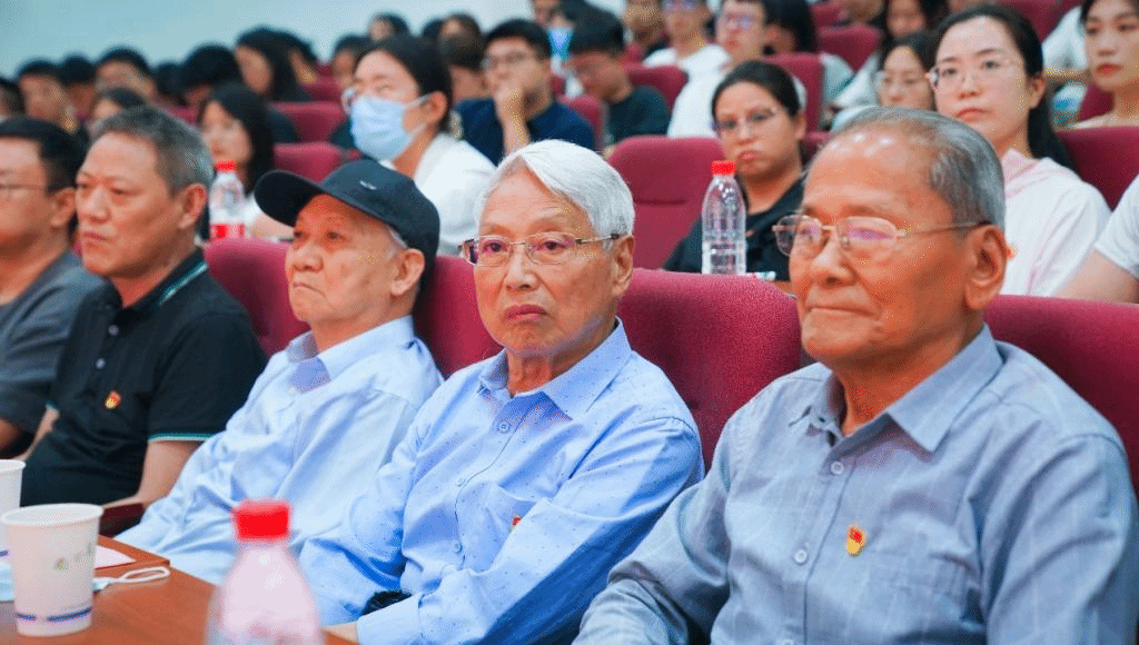 党日活动的第二部分,将学习贯彻习近平新时代中国特色社会主义思想主题教育与毕业生荣校爱校教育相结合。三位具有50年党龄的老党员江汉湖、陈伯祥、林炳芳上台为毕业生党员代表佩戴党徽。闪闪发光的党徽,承载的不仅仅是老党员们对于毕业生党员们衷心祝福,同样也是鞭策着他们党的事业离不开一代代人接班接力,希望他们永记党员身份,传承党的光荣传统,传承南京农业大学校训精神,为新时代发展贡献青春力量。